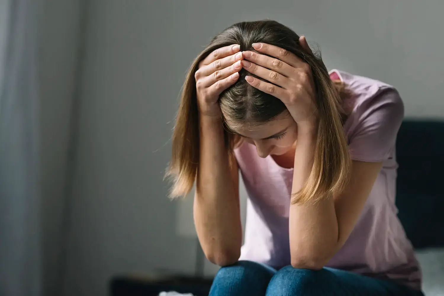 Person experiencing anxiety, showing signs like a racing heart and tense muscles - Anxiety Disorders